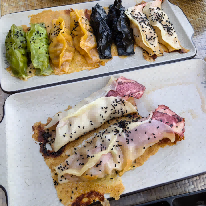 这家凭着一口地道锅贴圈粉无数,它的海鲜馅料新鲜地道,每一个锅贴都是现包现煎,面皮薄而有韧性,煎至底部金黄焦脆,内里软嫩多汁,咬开后鲜汁迸发。除了经典大虾馅,还有墨鱼馅可选,Q弹的墨鱼搭配鲜香的韭菜,鲜而不腥,搭配店里自制的蒜泥醋汁,口感更上一层楼,是本地人早餐、加餐的首选。