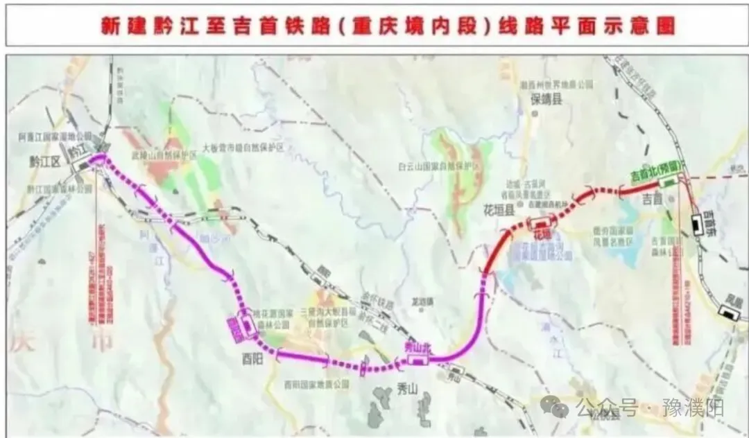 黔吉高铁,总投资454亿元项目是“八纵八横”厦渝通道的辅助通道和成渝至粤港澳大湾区高速客运通道的组成部分,属于重庆市“米”字型高铁网的重要构成。2022年9月由国铁集团启动勘察设计;2024年5月通过预可研审查,10月通过可研审查,11月通过初步设计预审。2026年1月,通过国家发改委和国家铁路局项目建议书评估暨行业评审,预计今年上半年取得可研批复。项目新建线路全长222公里(其中湖南段70公里、重庆段152公里),设计时速350公里/小时,配套建设黔江站机务设备补强和吉首东站实施3条动车组存车线等工程。全线共设5座车站,其中新建酉阳西、秀山北、花垣3个车站,利用既有黔江站、吉首东站2座车站。计划工期5年。以上三条高铁之所以能成功插队,还是在国家路网中具有不可替代的作用,对于打通国家主通道有重要意义。