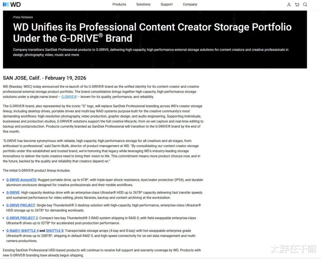 2026年2月19日,当中国还在春节假期,人们正准备迎财神的时候。西部数据官宣重启“G-DRIVE”品牌。