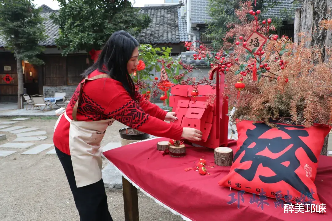 后院的开阔天井里,新春装置错落摆放,红灯笼、福字帖点缀其间,为古院添了几分暖意与喜气。泡一壶茶、翻几页书,或是静坐发呆,踏入这里的人,总能轻易卸下疲惫,找到属于自己的惬意时光。