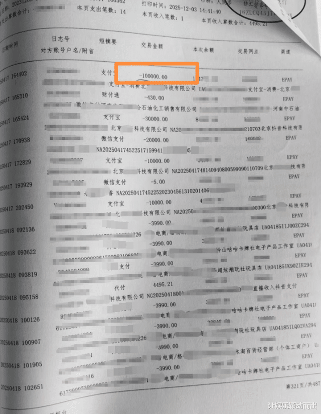 2025年4月17日,她最大一笔消费达到了10万元,当日累计消费达到14.64万元。
