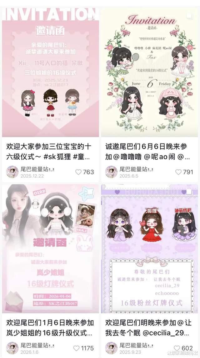 娱乐资本论通过狐狸官方粉丝账号的动态统计,有过16级灯牌升级仪式的大姐超过60人。彼时,招财俊宝只是其中一个大姐。