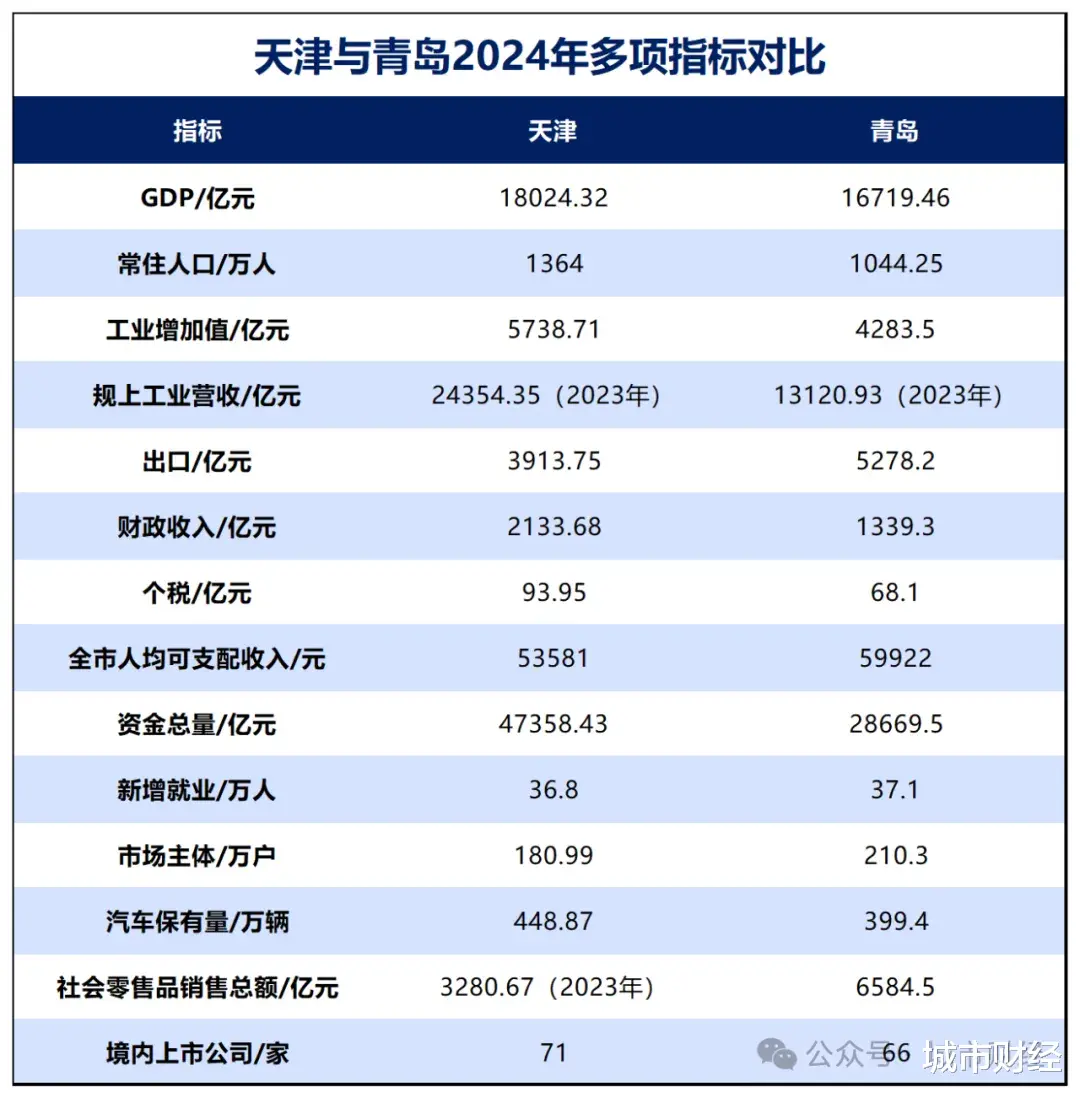 毕竟天津也有自己的优势。比如工业比青岛强。