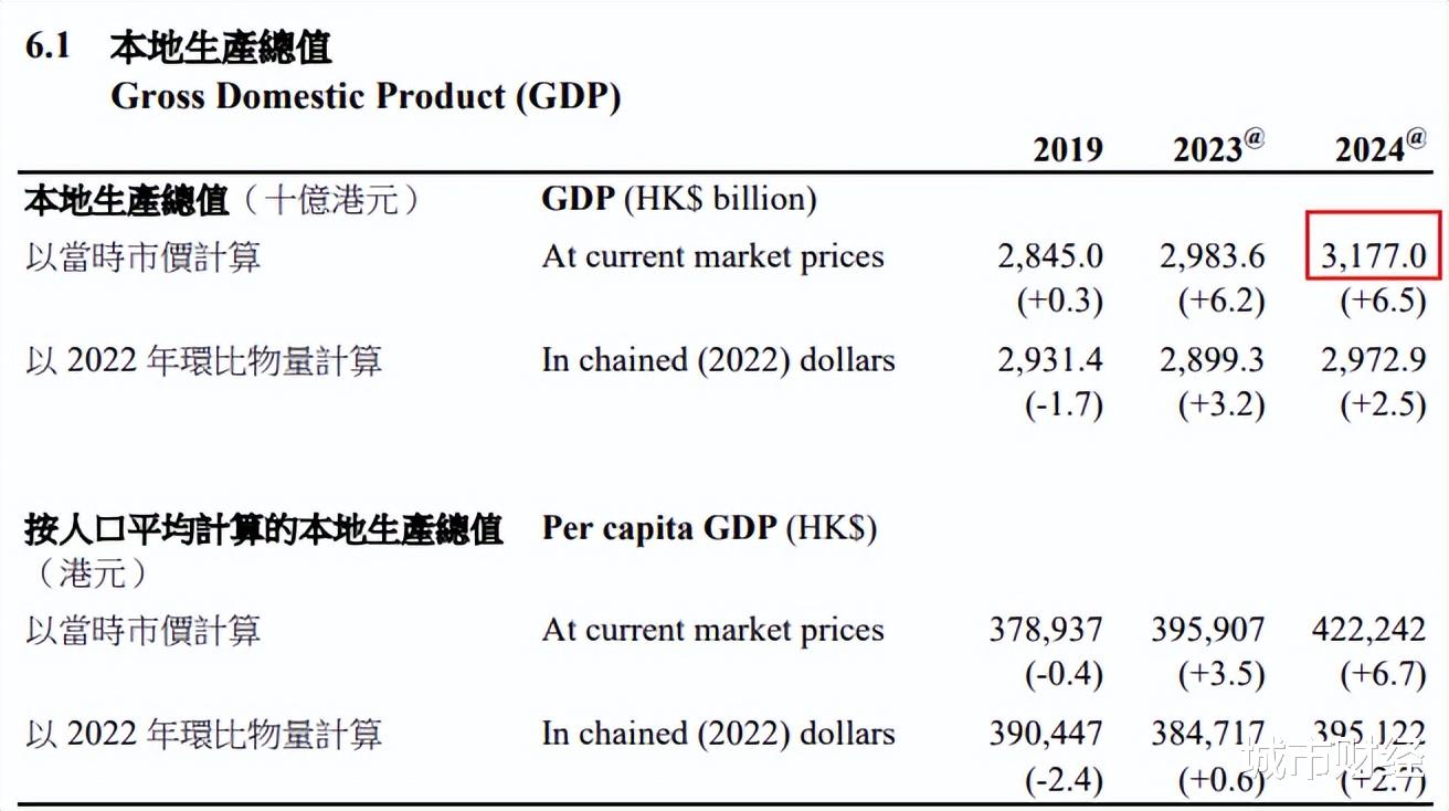 算上香港,中国共有10个万亿城市。香港政府统计处披露的数据,2024年香港GDP为31770亿港元,折算成人民币2.87万亿元,位居全国第六。