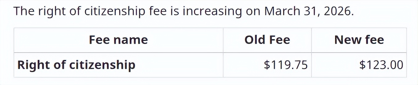 ☑ 公民权费用(Right of Citizenship Fee)原费用:$119.75 → 新费用:$123