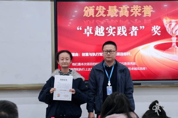 为表彰在前期项目实践中表现优异的学生,学院与企业联合评选出“卓越实践者”“优秀实践者”与“合格实践者”等奖项并现场颁奖,现场氛围热烈,掌声不断。这既是对个人努力的肯定,更是对校企协同育人模式成功的最佳注脚。