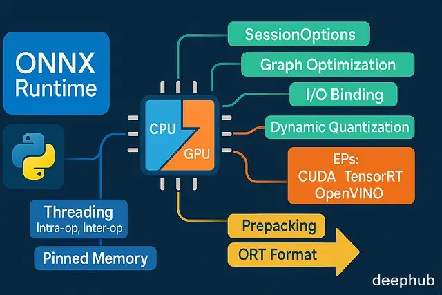 import os, multiprocessing as mp, onnxruntime as ort cores = mp.cpu_count() // 2 or 1 # conservative default so = ort.SessionOptions() so.intra_op_num_threads = cores so.inter_op_num_threads = 1 # start low for consistent latency so.graph_optimization_level = ort.GraphOptimizationLevel.ORT_ENABLE_ALL sess = ort.InferenceSession("model.onnx", sess_options=so, providers=["CPUExecutionProvider"])