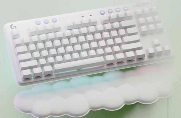 什么外设打游戏比较好?采用87键布局,砍掉数字区,节省桌面空间,让鼠标操作区域更宽敞,适合游戏和办公场景。有白色、蓝色等多种颜色可选,搭配金属面板和磨砂键帽,质感冷冽又高级,且哑光外壳不沾指纹,边角线条利落。RGB极光灯效是一大亮点,灯光会顺着手指流动,有多种模式可调节,如呼吸模式、彩虹波浪等,能营造出极具未来感的氛围,甚至被形容为像科幻电影中的道具。配备罗技自研的Lunar低噪红轴,手感偏软但回弹利落,长时间码字或游戏手指不易酸累,且声音轻柔,不会过于吵闹影响他人。