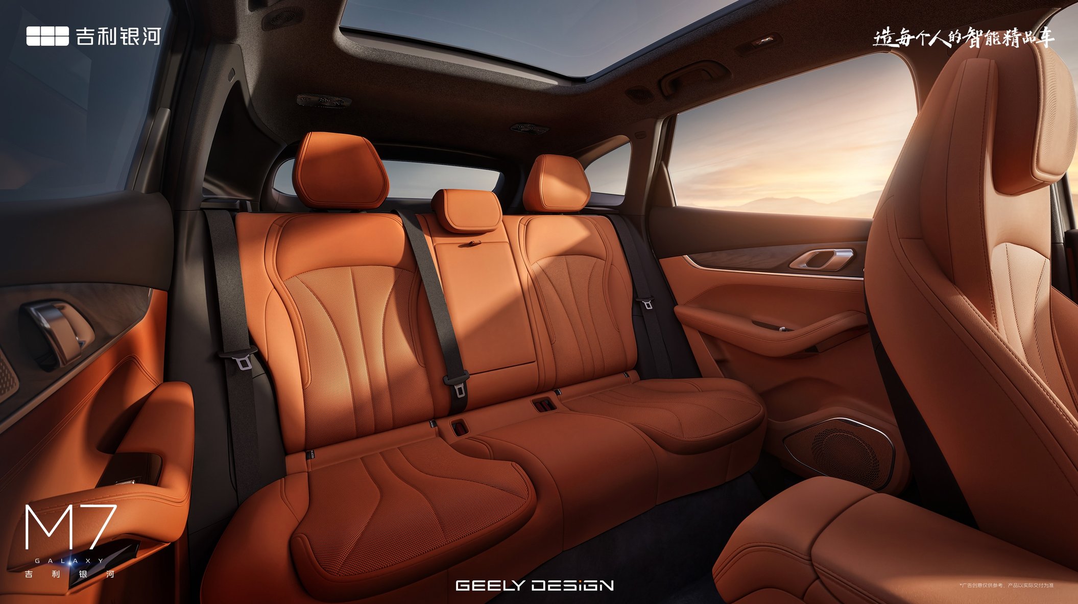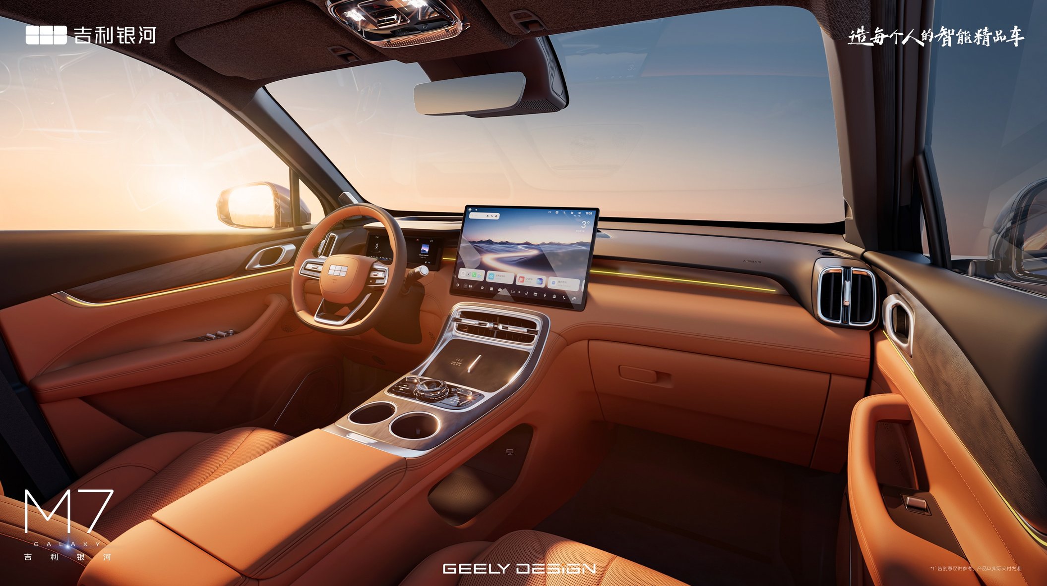 在内饰设计上,银河M7以“宽景广厦”为核心理念,用人文温度中和科技的冰冷,打造出符合全球用户审美的座舱体验。设计团队通过压缩仪表台厚度、优化A柱角度,为驾驶者营造出通透的前方视野,1.2平方米的超大全景天窗则让阳光与自然景致融入座舱,打破了传统SUV座舱的压抑感。车内大面积覆盖生态麂皮并点缀自然木纹饰板,从材质选择上贴近轻奢简约的全球设计趋势,而Flyme Sound 23扬声器系统与256色AI氛围灯打造的“声光共鸣”效果,更让座舱成为兼顾听觉与视觉的感官空间,满足了用户对出行体验的多元化需求。