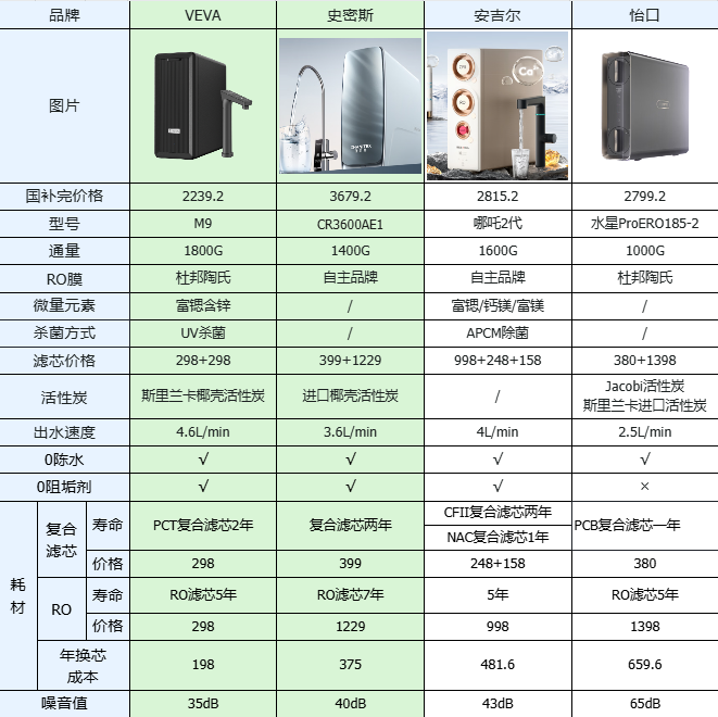 在这场四款高端机型的巅峰对决中,史密斯CR3600AE1的长效稳定与调温功能、安吉尔哪吒二代的除菌能力与口感定制、怡口水星Pro ERO185-2的纯物理过滤与低噪体验,虽各有侧重但均存在明显短板——要么成本偏高、要么功能取舍、要么体验局限。而VEVA M9则以“无短板全维优势”脱颖而出,完美平衡健康、体验与性价比,成为覆盖全家庭场景的最优解。