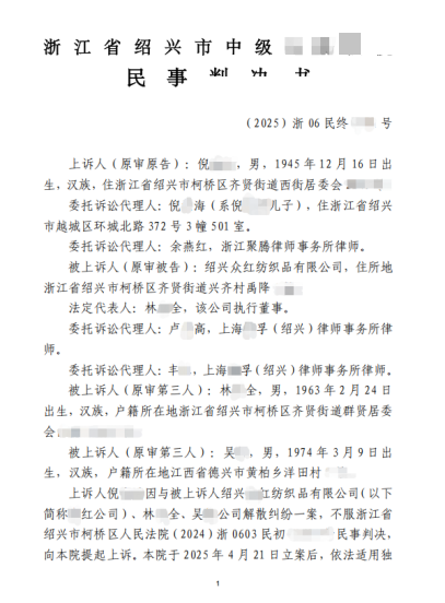 在浙江绍兴柯桥,一家经营状况正常、厂房持续稳定出租的纺织企业,在未出现经营亏损与债务违约的情形下,被二审法院判决强制解散。持有公司40%股权、累计投入近 3000万元的股东吴某,从公司最大出资人沦为 “被驱逐者”,其股东权益因此受到重大影响。这场始于股东内讧引发的纠纷,进而演变为涉及商业诚信与合法投资保护的司法争议,背后情况值得关注。