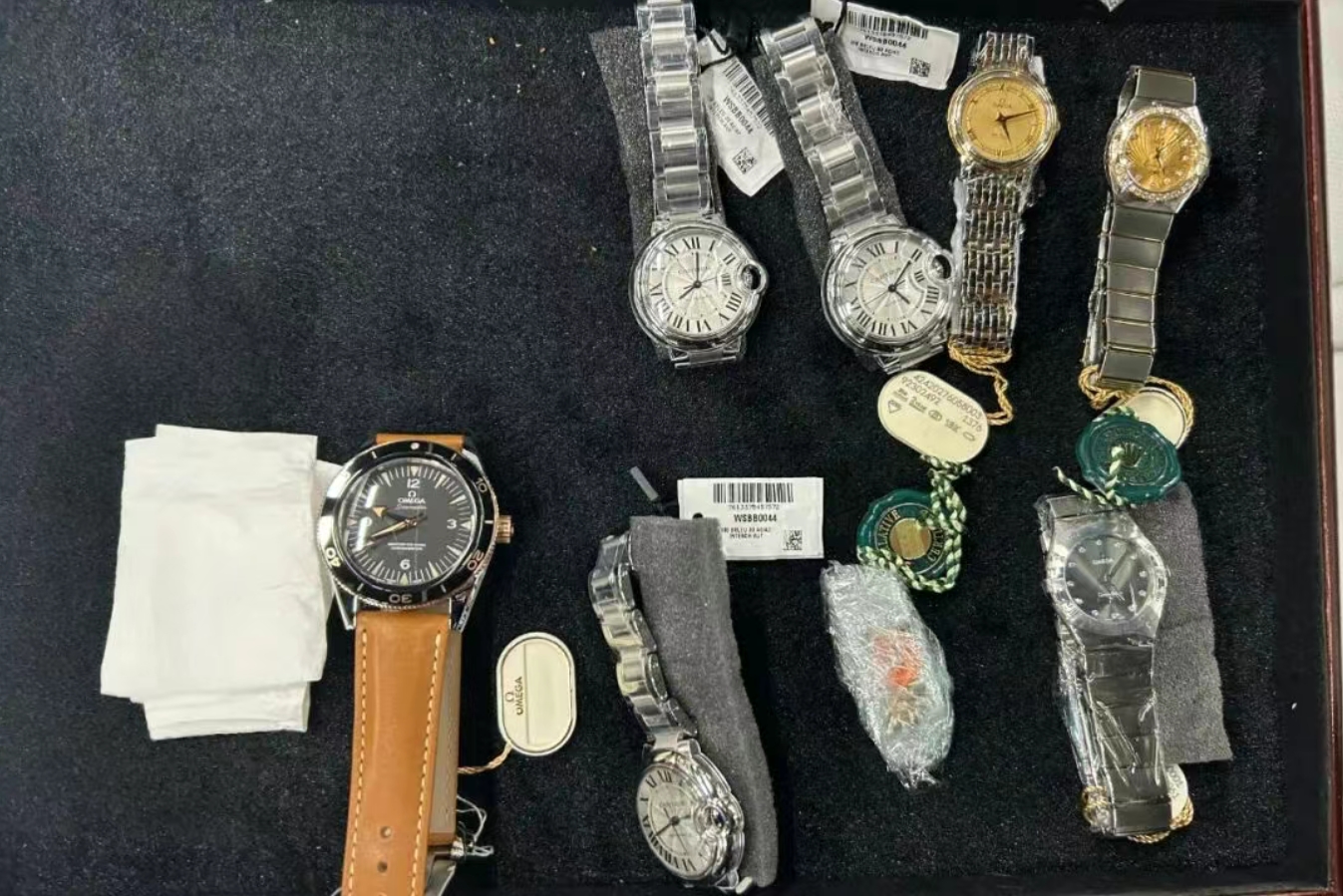 近日,西九龙站海关查获1名进境旅客脚底藏匿手表走私案,共查获手表7块。
