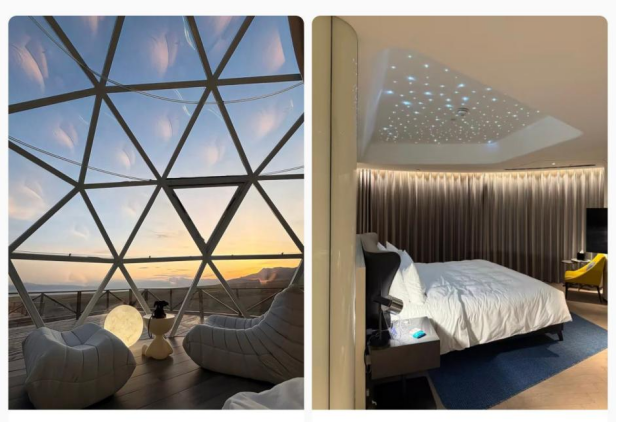 悬浮浴缸、星空顶、带滑梯的房间。美,是真美。炫,也是真炫。