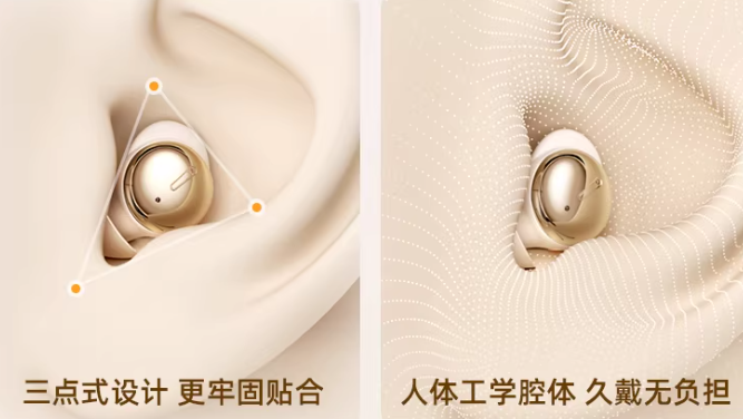 还有佩戴舒适度,这一点真的太重要了!采用首创的mini超软抗菌耳帽,结合人体工学腔体设计,实现0压空气感佩戴;基于三点式结构及专为耳廓优化的设计,能均匀分散受力,减轻压迫,真正做到久戴无痛。另外它有好几种尺寸的耳帽,可以适配不同耳廓造型的人群,使用更贴心。