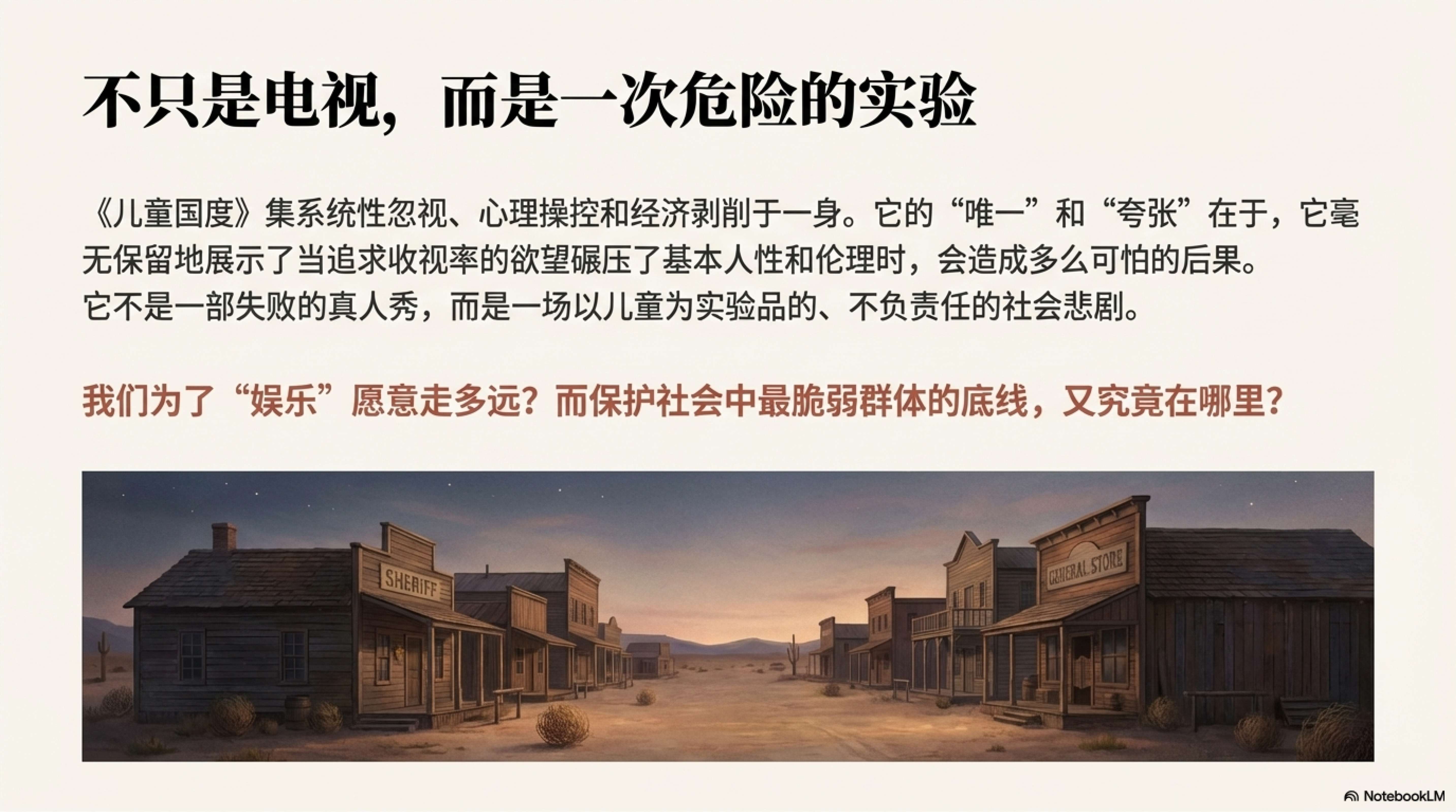 《Kid Nation》播出后,立刻引发了巨大的社会争议。据Jimmy透露,这个节目“被告了很多很多次”。因为接连不断的官司和舆论的强烈抨击,制作方和电视台最终选择了“埋葬”这个节目。如今,你几乎在任何地方都找不到或买到这部真人秀的完整剧集,全网都处于“查无此剧”的状态。这也正是为什么,如此一档惊世骇俗的节目,今天却鲜为人知。
