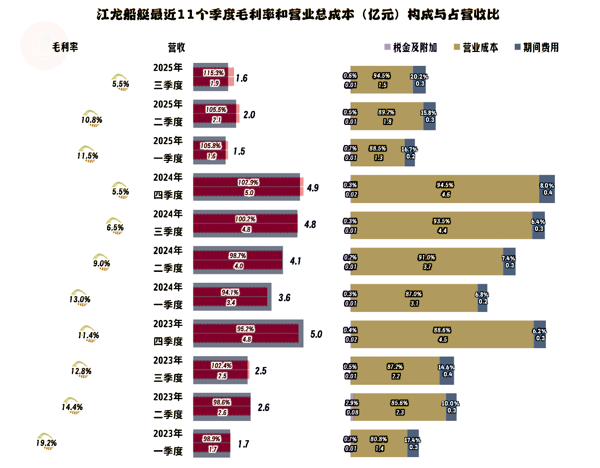 不管按归母净利润看,还是按主营业务盈利能力看,江龙船艇2025年以来的经营形势都比较严峻。