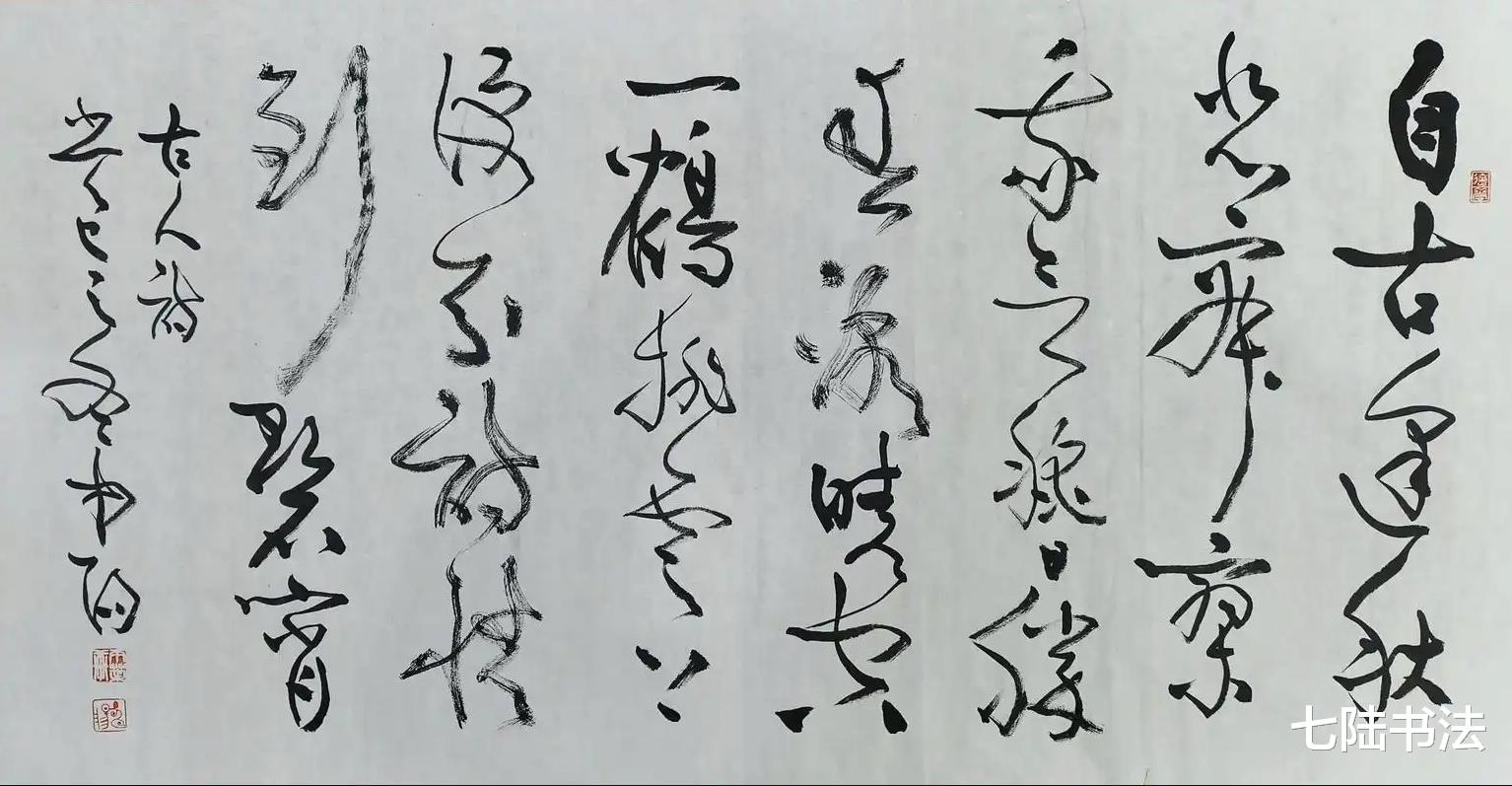 无论是草书作品中的长线条腾挪,还是楷书作品中的短线条排布,他都能做到简洁利落、恰到好处,不拖泥带水,不刻意雕琢,以最朴素的形态,传递出最丰富的艺术情感。
