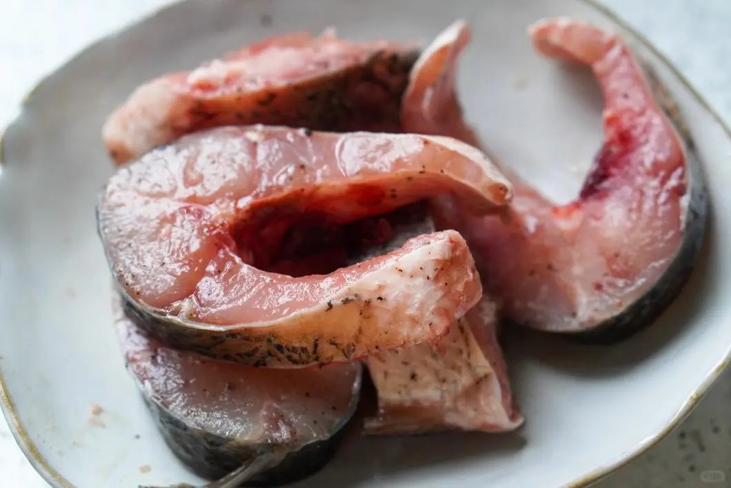 1、把草鱼切成大块,放到个大碗里。撒上一点盐,再倒上点料酒,然后抓上半勺黑胡椒粉,用手这么抓匀了。让这鱼块在调料里好好泡着,腌制个 20 分钟,让它入入味儿。这时候咱就可以去准备其他东西啦,把土豆片切好,干辣椒掰掰,蒜切成片。