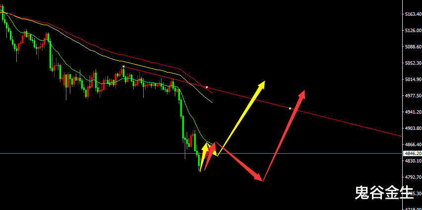 昨日晚间美联储维持基准利率不变,黄金没有什么变化,因为在这之前已经暴跌了,算是消息的提前消化,最低4804附近,符合鬼谷的预期4800一线,这里既然到了,那么可以宣布短期底部形成了,即便再下去也不会低于4770一线,内盘可以分析建仓进去了;