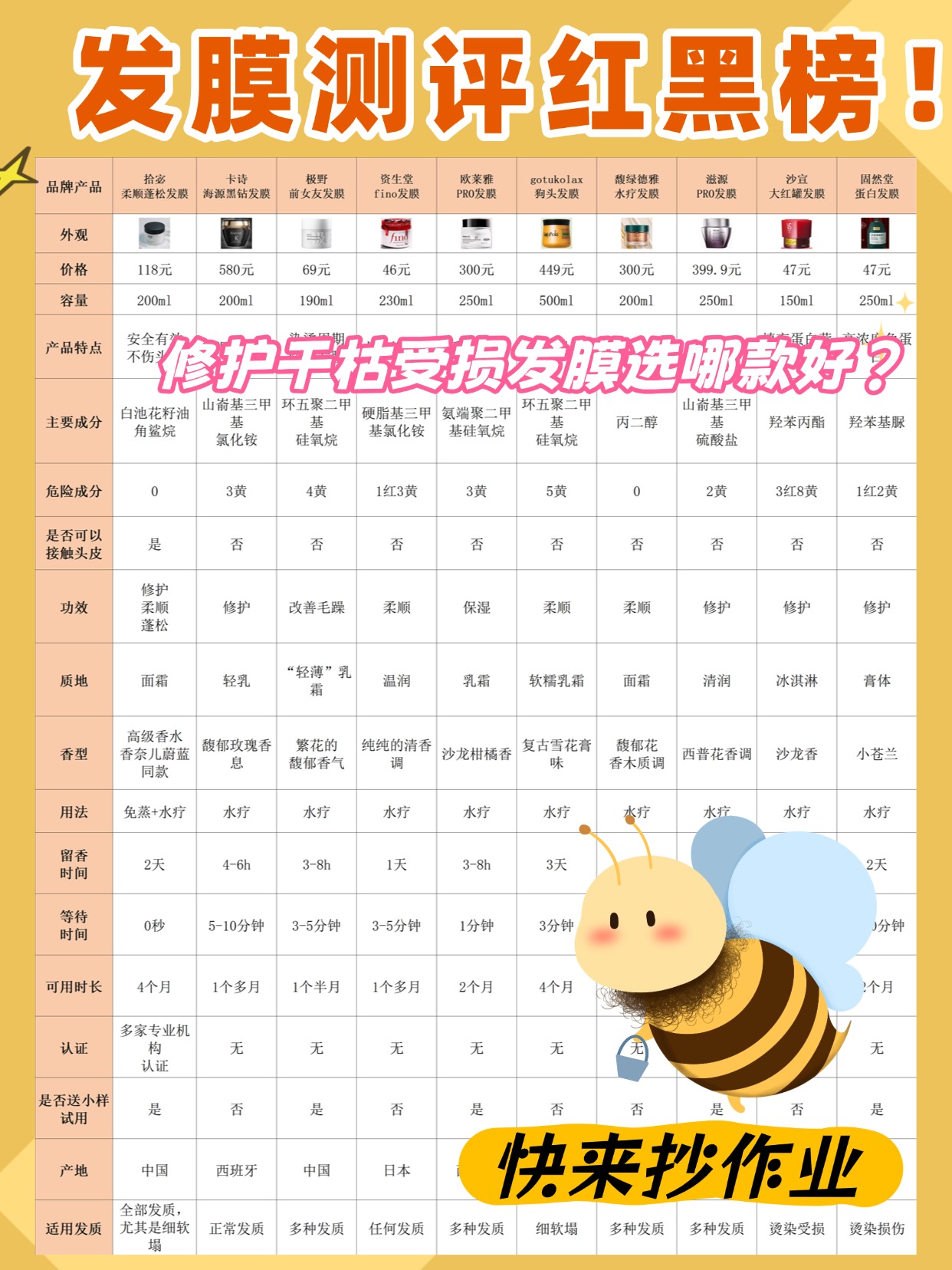 经常有粉丝问发膜好还是护发素好,其实两者定位完全不一样,护发素是日常顺滑,洗完头就用,停留几十秒冲掉就行,发膜是深度修护,一周用一到两次就够,受损发质可以适当增加频率,两者可以搭配但不能互相替代,很多人把发膜当护发素天天用,反而让头发负担太重,显得油腻扁塌,这些都是很常见的误区,接下来给大家分享我做测评时总结的发膜挑选经验,全是实用知识点。