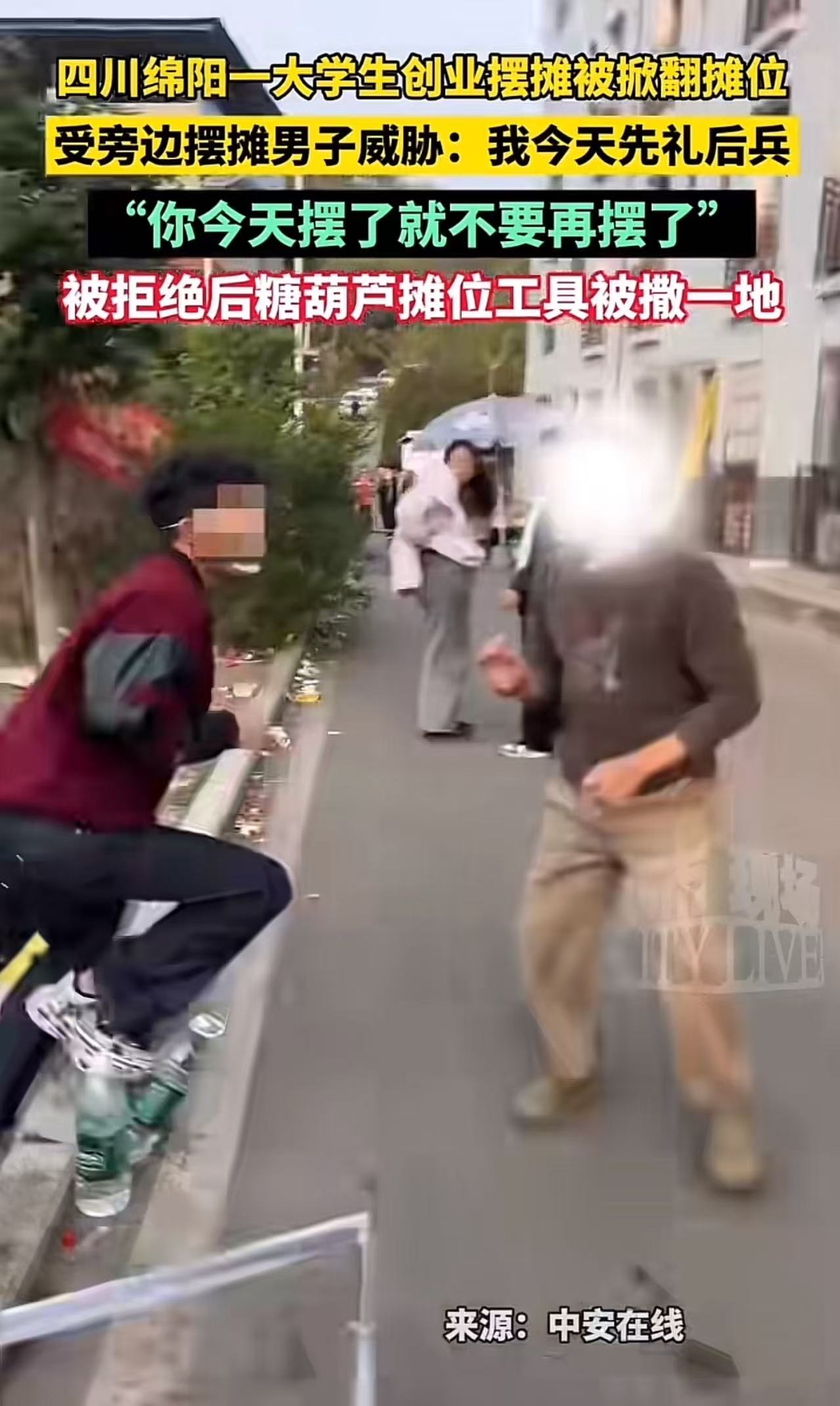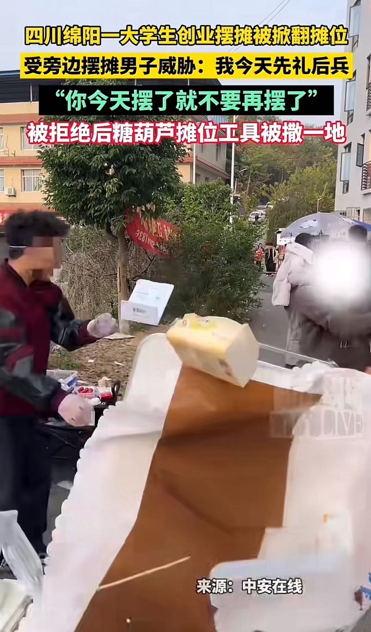 四川绵阳大学生摆摊遭掀摊!男子叫嚣“专属地盘”,网友怒评:底层何苦为难底层