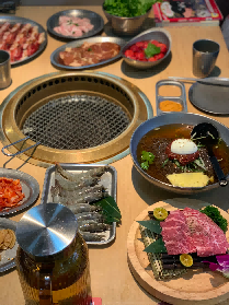 安格斯牛肋条烤到微微卷曲,肉汁饱满,一口下去幸福感爆棚!黑虎虾超大只,虾肉鲜甜蘸上秘制酱料绝了!冷面酸甜爽口,面条爽滑,吃完烤肉嗦一口超解腻!