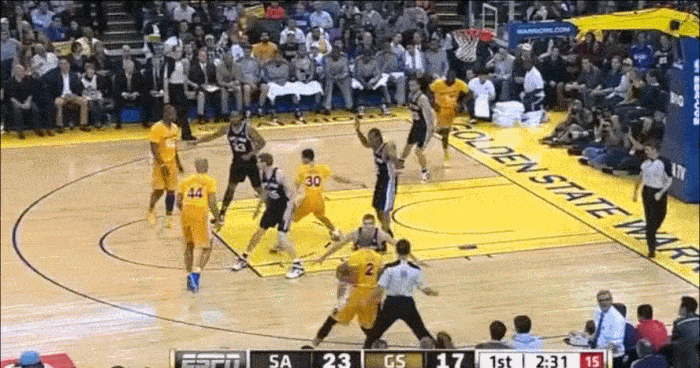 不过,在威尔斯跑到强侧油漆区时,突然反跑篮下(Backdoor Cut),接赵继伟传球,空接完成上篮。