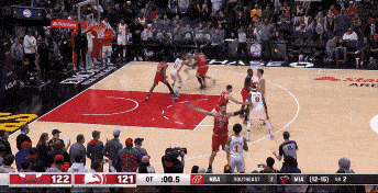 第二种,威尔斯Slice cut,在强侧底角出手三分(对新疆绝平三分);