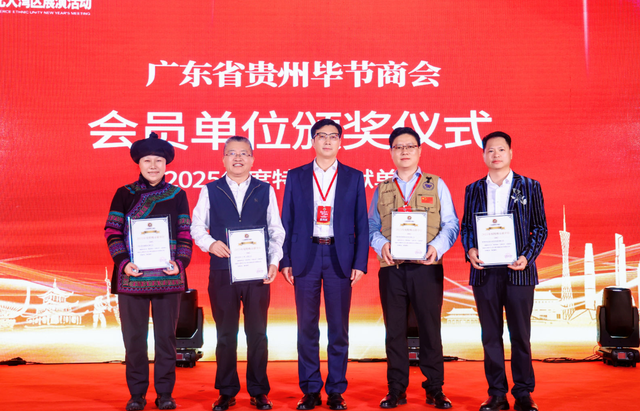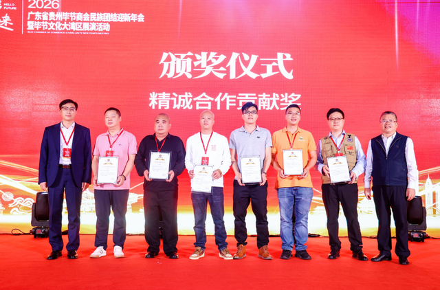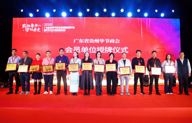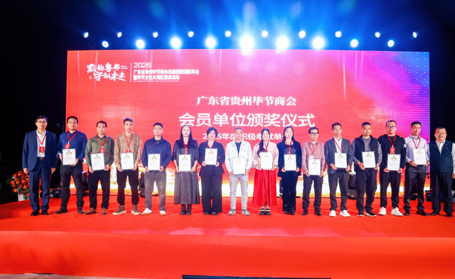 在2026广东省贵州毕节商会民族团结迎新年会暨毕节文化大湾区展演活动中,广东省贵州毕节商会还为一年来为协会作出贡献的颁发了精诚合作奖;并对宣传毕节。推广毕节文化颁发了文化宣传大使奖。
