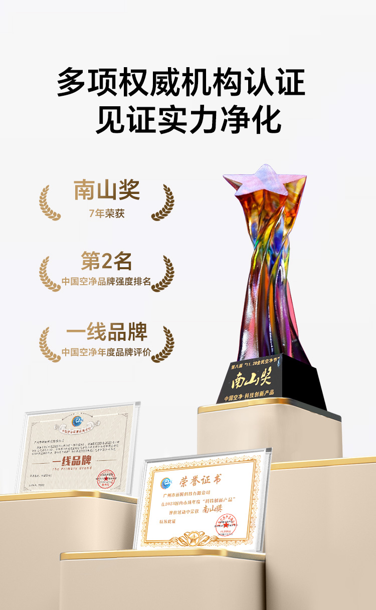 四、荣誉加持,更懂大空间的 “专属净化需求”新颐 A8 的荣誉不是“空中楼阁”,而是精准解决大空间痛点的“利器”:
