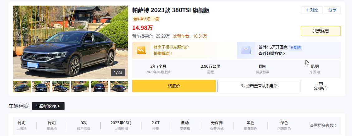 有推荐就有不推荐,同样在这个预算内,我不建议选2019-2021款大众帕萨特2.0T低功率版。这款车的车源不少,价格也差不多在15-18万,但家用代步真的不合适。首先它的双离合变速箱,低速行驶时有明显顿挫,市区堵车开着特别闹心,顿挫的故障率不低,家用图的就是省心,总跑修理厂太糟心。其次,它的油耗表现不如凯美瑞,实测百公里综合油耗8.8L,长期开下来油费是笔不小的开支;舒适性也一般,后排座椅偏硬,长途乘坐体验不好,而且智能化配置比较基础,对比同价位凯美瑞差距明显。虽然它底盘扎实、高速稳,但家用代步大多在市区通勤,这些优势根本用不上,反而故障率和使用成本更高,真心不建议家用党入手。