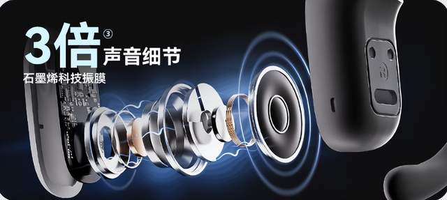 音质方面,耳机是在五百元以内表现最好的,它搭载的 16.2mm 石墨烯科技振膜,石墨烯材质形变能力好,能很好的还原声音的细节;耳机的16.2mm 大尺寸发声单元,让音量更大,低音更饱满。经过虹觅声学实验室专业调音,减少了对声音的修饰,声音表现更自然,搭配 H-Zone 全景空间音频技术,听歌上会有很不错的氛围感。