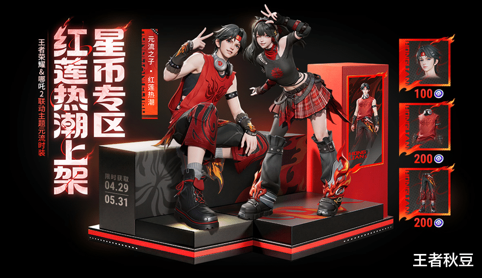 元流新时装红莲热潮将于4月29日-5月31日上架,整套购买为500星币一套。也能单件购买,价格分别是发型:100星币,衣服:200星币,裤子:200星币。