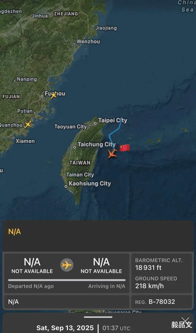 9月13日上午,解放军东部战区一架空警-500预警机在台岛东北方向空域突然现身,随后沿海岸线由北向南飞行,在距离花莲县海岸最近时仅60公里。这架编号B-78032的空警-500在飞抵新北市瑞芳区鼻头角约120公里空域时,突然开启ADS-B信号应答器,向全球民用航空追踪平台广播实时飞行轨迹和高度信息。这一反常举动迅速引发了台军的高度警觉,紧急从花莲空军基地派出多架F-16V战机升空应对,进行识别查证和伴飞监视。