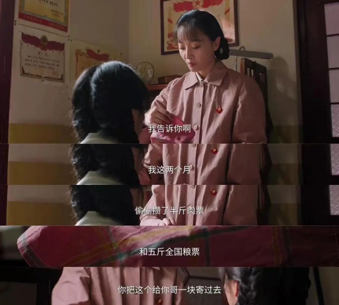 他们的感情生长于日常生活中,表达爱意的方式也与柴米油盐有关。费霆当知青,除了打电话,林梅会悄悄把自己的粮票等物品省下来交给费霓,让她转寄给费霆——爱一个人,就是想他吃饱穿暖,烟火爱情就是这样直接朴素。