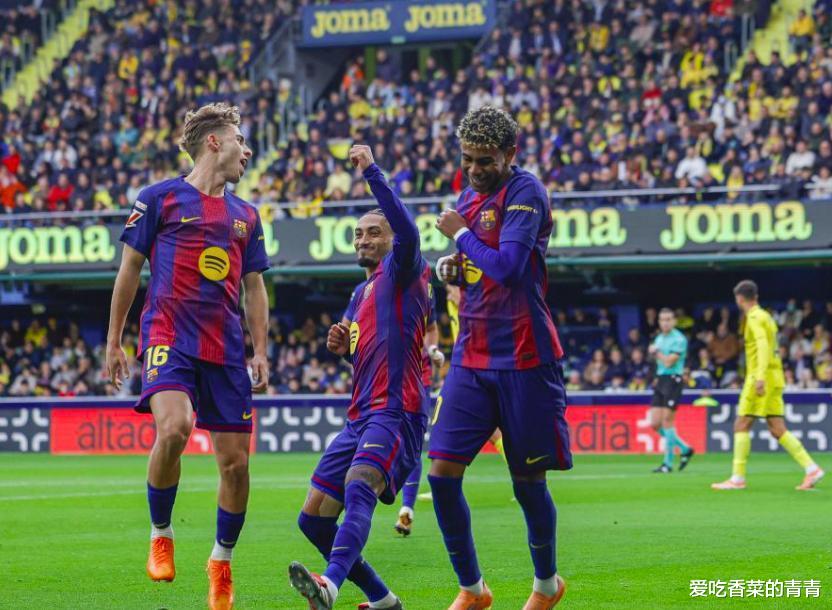 在陶瓷球场,巴萨面对联赛第三的比利亚雷亚尔展现出统治力。第12分钟,拉菲尼亚突入禁区造点并亲自主罚命中,连续两轮打入第三球。