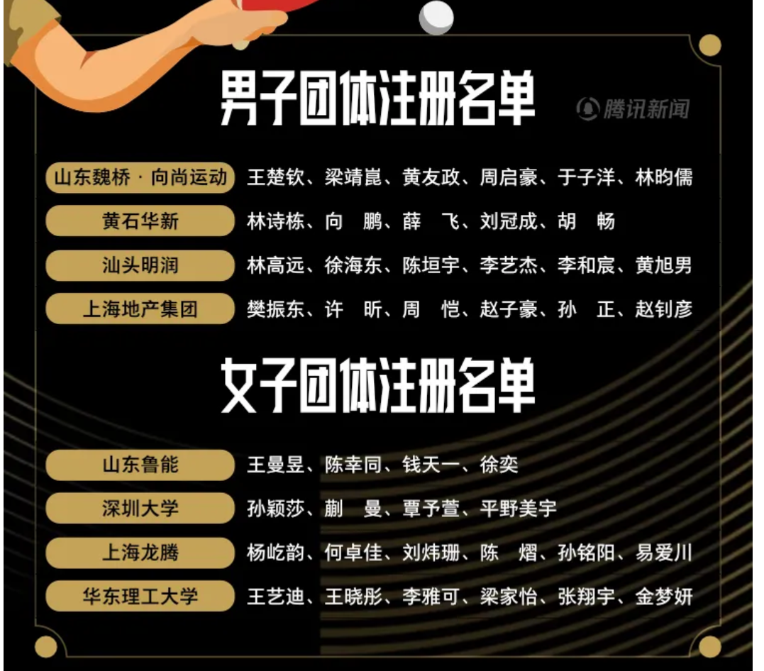 赛场内外看点十足。卫冕冠军山东魏桥男团凭借常规赛不败金身成为夺冠热门,王楚钦与梁靖崑的“双王牌”组合威力十足;而女团赛场深圳大学以9胜1负的战绩领跑常规赛,孙颖莎的状态直接左右战局,山东鲁能虽位列次席,但王曼昱与陈幸同的默契配合同样不容小觑,两队大概率将在决赛上演强强对话。