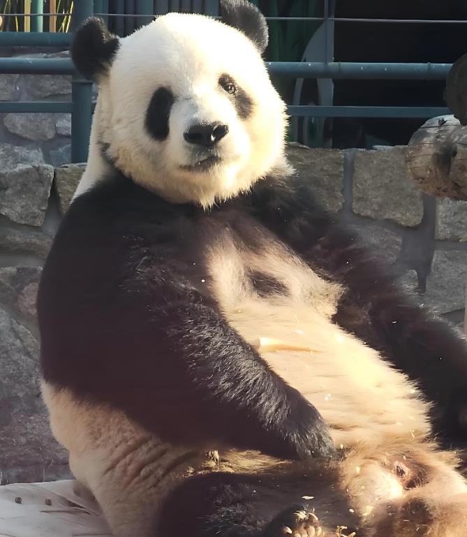 不同于四川熊猫的灵动俏皮,萌二举手投足间带着一种见过大世面的淡定。无论游客如何喧哗,它自顾自地啃着苹果,眼神中透着一种“你们随便拍,朕已习以为常”的霸气。这种气质,恰恰符合了中国传统文化中对“国宝”的想象:端庄、大气、沉稳。