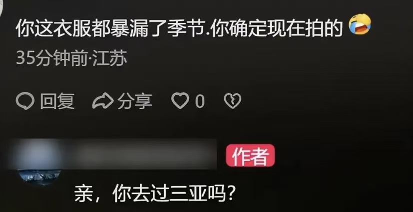 有网友质疑这不是最近的照片,拍摄者说这是三亚,现在的天气要么穿短袖,要么就是穿薄薄的卫衣。