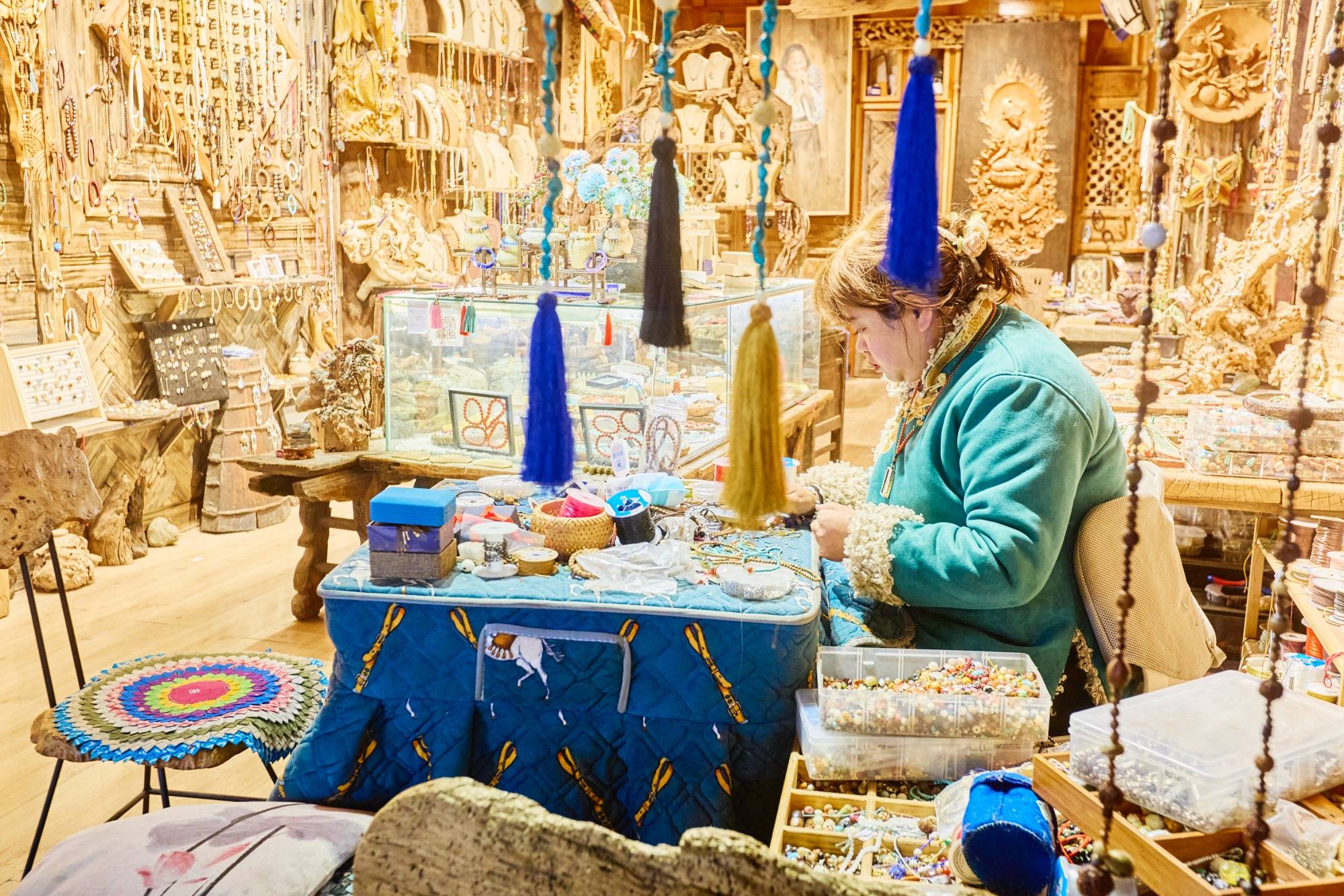 手作店里不仅有项链、耳坠、戒指等各种首饰成品,还可以定制专属藏式首饰,店主现场制作,从串珠到编绳全程手工,是如假包换的made in hand。