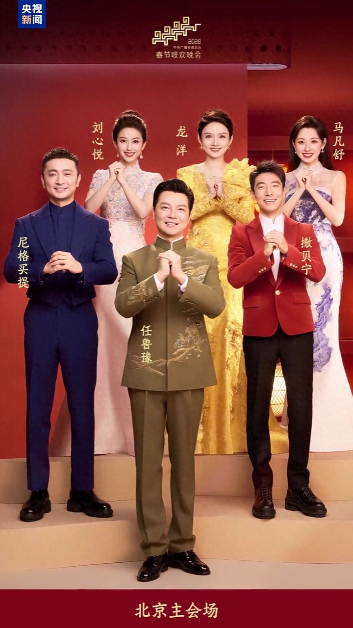 2月4日,中央广播电视总台《2026年春节联欢晚会》发布主持人阵容。任鲁豫、撒贝宁、尼格买提、龙洋、马凡舒、刘心悦将共同担任2026年总台春晚北京主会场主持人。四地分会场主持人为:黑龙江哈尔滨分会场杨帆、姜多;浙江义乌分会场郭若天、贺传;安徽合肥分会场朱迅、白羽;四川宜宾分会场张韬、王楚涵。