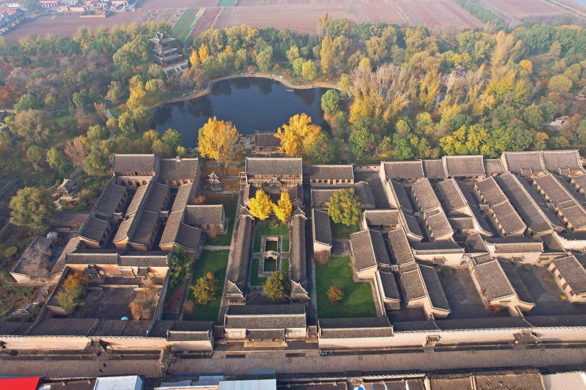 自然奢享:静园“私人观景台”(270°看“园林与远山同框”),无人机航拍“晋中儒商全景”;