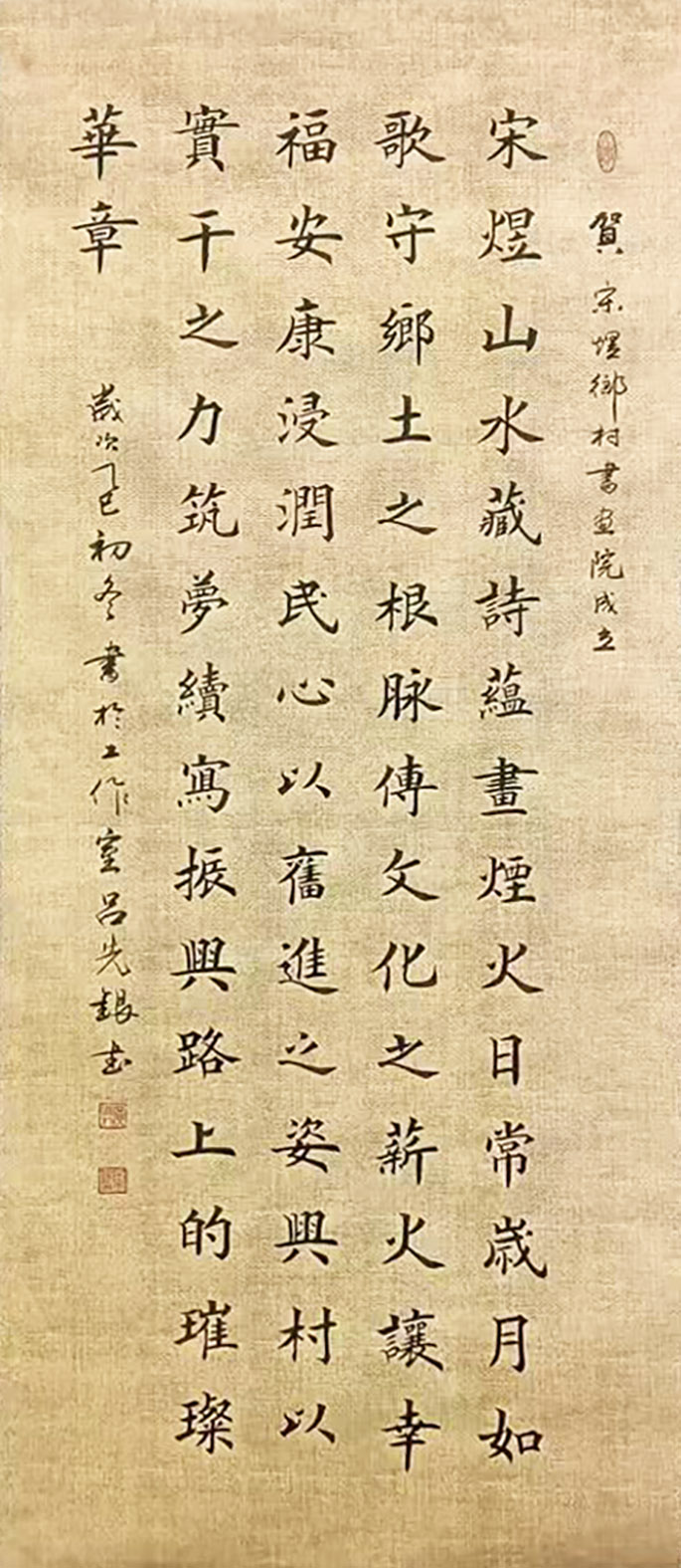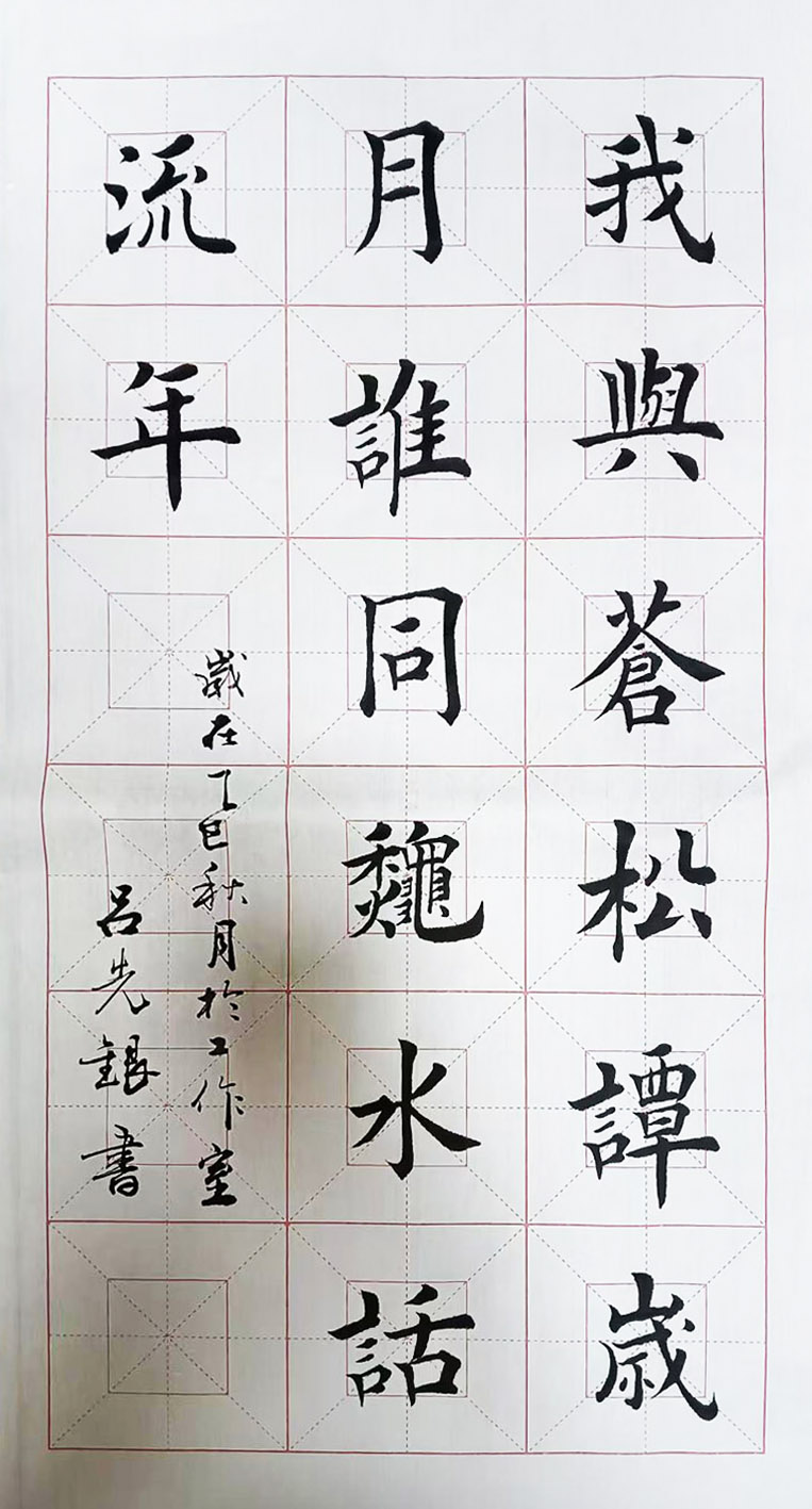 吕先银,男,1957年出生,湖北省武穴市人,1974年毕业于武穴市高中,后来进修财校,因受职业的影响,早在八十年代初就爱好书法,三十多年来本人坚持不懈临帖练习,现是武穴市书法协会会员,中国硬笔书法协会会员。2014年参加中央数字电视“迎新春”书画展被入围展播;同年参加“中国梦”“书画情”强国复兴书画大赛中获优秀奖。2015年参加上海市书画作品获优秀奖。2017年参加上海华珍阁艺术馆全国统一赛题“金刚经”获永久收藏。2019年获首届“岭南杯”全球华人书画大赛金奖;同年12月份参加首届“华运杯”全国书画大赛中获得三等奖;同年参加中国硬笔书法协会举办的第三届“新时代”全国诗书画印联赛,我的书法获金奖。2020年在本市由市文化馆举办个人书画展等。