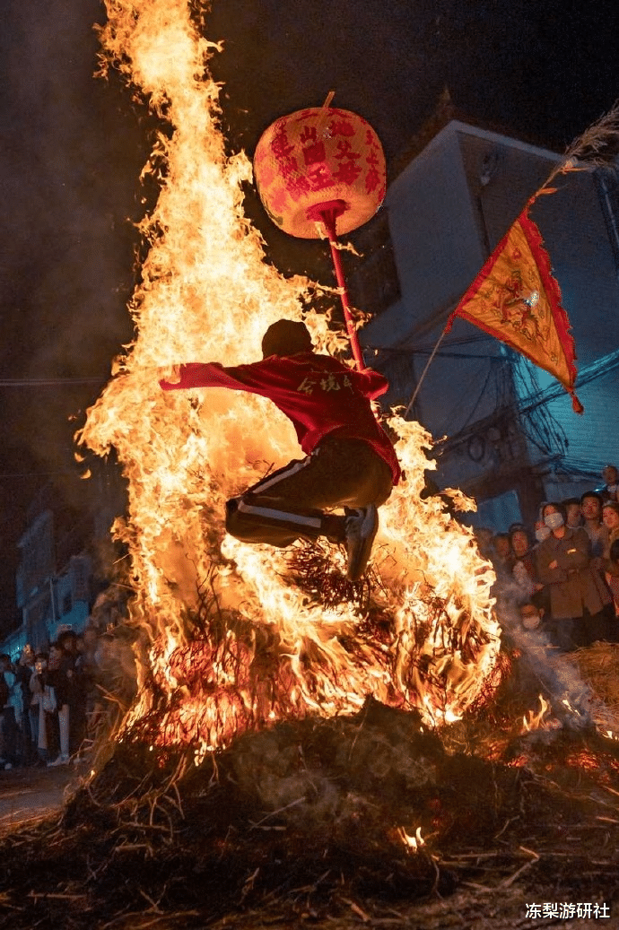 除了大家最熟悉的放鞭炮、打铁花、放烟火,在福建潮汕地区,还有着“跳火群”的独特习俗。高达数米的火堆烧的正旺,而勇士们在喝完壮胆酒后随着呐喊,赤脚冲向火堆,在他们眼里,火不是危险,是保佑全家平安的神明。