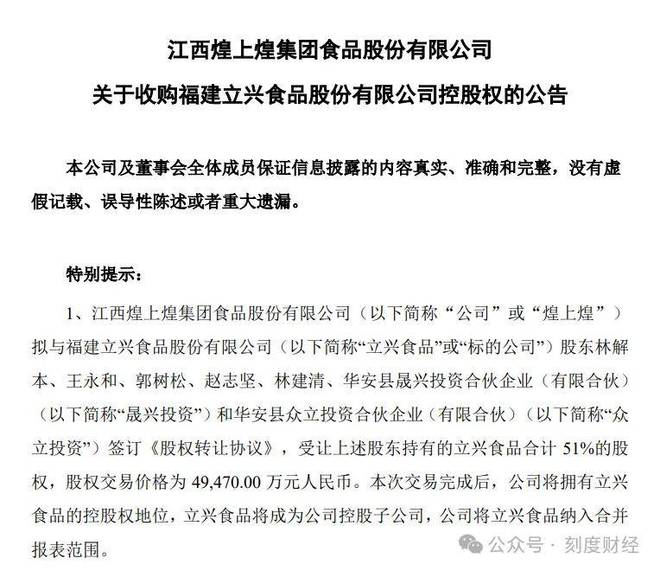 2025年8月,煌上煌以4.95亿元收购福建立兴51%股权,9月完成股权交割并正式并入合并报表,标志着公司正式切入冻干食品赛道。