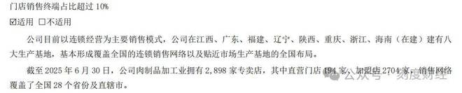 酱卤业务以门店扩张为主,截至2025年6月,煌上煌2898家门店中,加盟店占比高达93.3%,直营门店仅194家。这种“重加盟、轻直营”的模式在行业扩张期帮助公司快速抢占市场,但在消费下行期暴露了致命缺陷:加盟商自主经营权过大,导致终端品质管控难、服务标准化程度低,进而影响品牌形象。