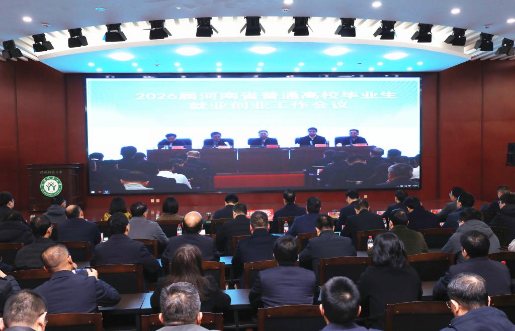 12月19日,2026届河南省普通高校毕业生就业创业工作视频会议召开,全面部署全省高校毕业生就业创业工作。信阳师范大学在艺术楼一楼报告厅设分会场,组织相关人员集中收看,校党委书记王文鹏、副校长朱晓东出席,相关职能部门、学院(书院)负责人、分党委副书记、就业秘书和毕业班班主任等参加会议。