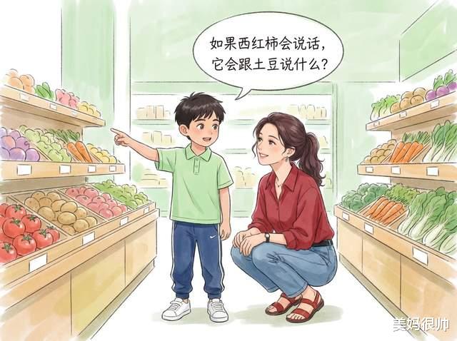 很简单,问“如果……会怎样”的时候,不要说他“瞎想”,而是鼓励他往下编。平时也可以主动抛问题,比如带孩子逛超市时问他:“要是货架上的东西都会说话,你觉得西红柿会跟土豆说什么?”让他天马行空地去想。