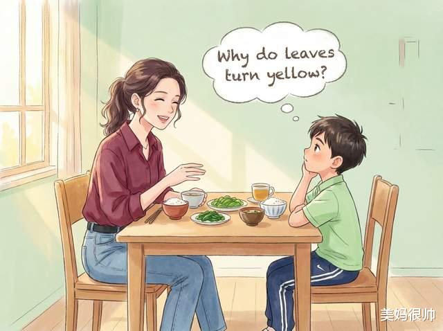 小朋友爱问东问西,正是“长脑子”的节骨眼,当他问“为什么树叶会变黄”,你可以反问他:“你觉得呢?”让他试着说出自己的想法,并且鼓励他提问,耐心听他讲。