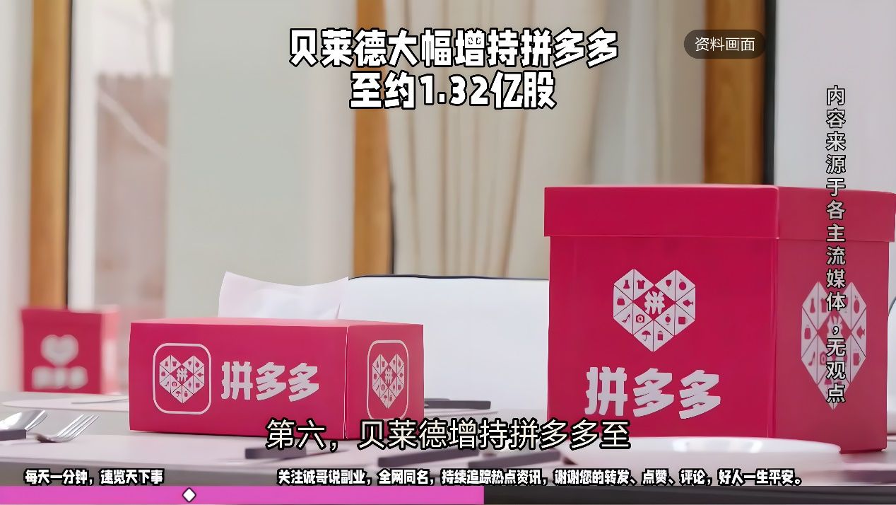 第六,贝莱德增持拼多多至约1.32亿股,占股本比9.5%。